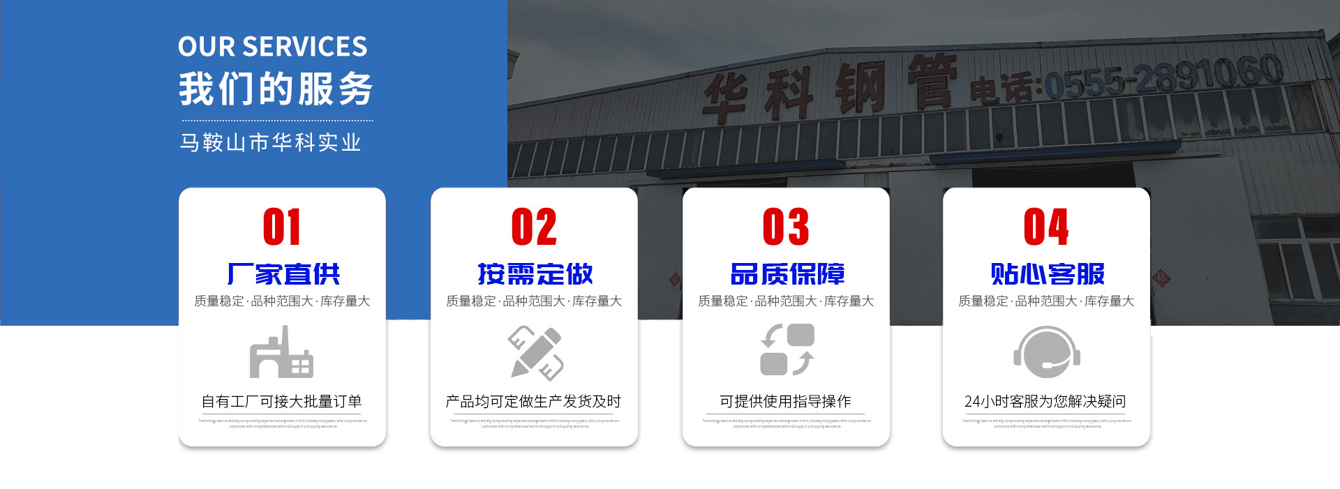 馬鞍山市華科實(shí)業(yè)有限公司是馬鞍山市重點(diǎn)骨干企業(yè)和“專(zhuān)精特新”企業(yè)及安徽省民營(yíng)科技企業(yè)和高新技術(shù)企業(yè),位于“國(guó)家衛(wèi)生城市”和“國(guó)家園林城市”的馬鞍山市雨山工業(yè)園,緊鄰經(jīng)濟(jì)發(fā)達(dá)的長(zhǎng)江三角洲,交通快捷便利。公司原名馬鞍山市華科冶金設(shè)備制造有限公司,始建于1995年4月,是生產(chǎn)冷軋帶鋼的專(zhuān)業(yè)廠(chǎng)家。憑借馬鋼得天獨(dú)厚的原材料資源和安徽工業(yè)大學(xué)雄厚的技術(shù)優(yōu)勢(shì),歷經(jīng)十多年艱辛的磨礪,華科公司已在新材料研發(fā)及成型技術(shù)領(lǐng)域獨(dú)樹(shù)一幟,成績(jī)裴然。公司下轄冷軋帶鋼分公司(帶鋼車(chē)間、焊管車(chē)間、不銹鋼復(fù)合管和卷簧車(chē)間);連鑄(端板)分公司,并與安徽工業(yè)大學(xué)合作創(chuàng)辦了材料成型技術(shù)研究所。公司總資產(chǎn)7000多萬(wàn)元,2010年、2011年技工貿(mào)收入連續(xù)超過(guò)億元,銀行信用AAA等級(jí),為馬鞍山市“民營(yíng)企業(yè)”、“誠(chéng)信企業(yè)”、“專(zhuān)精特新”企業(yè)、“民營(yíng)100強(qiáng)企業(yè)”、“民營(yíng)企業(yè)百?gòu)?qiáng)排序10強(qiáng)企業(yè)”、“重點(diǎn)骨干企業(yè)”和安徽省A1級(jí)誠(chéng)信納稅客戶(hù)、民營(yíng)科技企業(yè)及高新技... [查看更多]