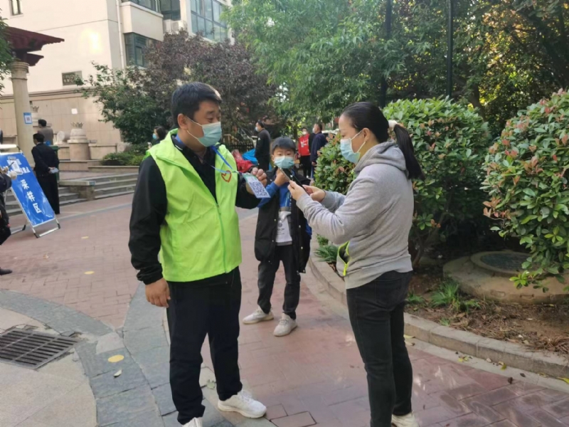 城發(fā)工程管理有限公司員工石雷超,收到下沉社區(qū)的通知后,第一時(shí)間到頤南社區(qū)報(bào)到成為了一名志愿者,按照社區(qū)安排,在核酸檢測(cè)現(xiàn)場(chǎng)指引居民掃碼、檢測(cè)等工作。同時(shí),作為馬頰河清淤疏浚項(xiàng)目現(xiàn)場(chǎng)負(fù)責(zé)人,每天服務(wù)完社區(qū)核酸檢測(cè)工作后就趕到項(xiàng)目現(xiàn)場(chǎng)督導(dǎo)清淤工程疫情防控及工程進(jìn)度建設(shè)。