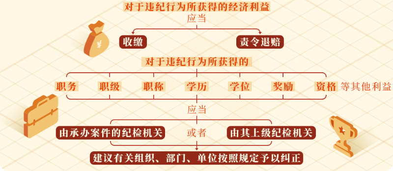 《中國共產(chǎn)黨紀律處分條例》對于違紀行為所獲利益如何處理作出了規(guī)定。主要分為兩種情況——